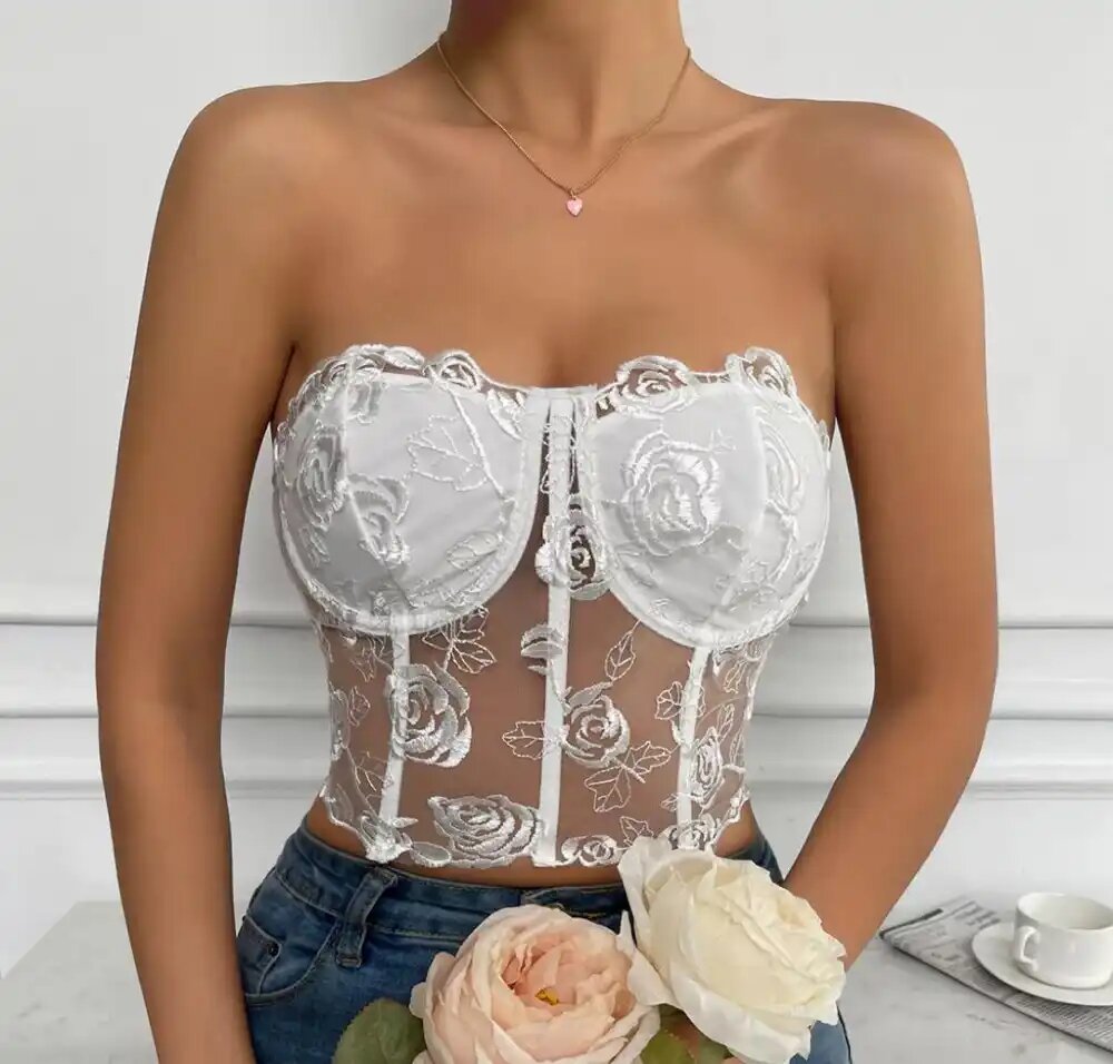 The strapless lace corset features our signature built in corsetry and underwired cups that provide elevated support and cinch your waist to create an alluring silhouette.